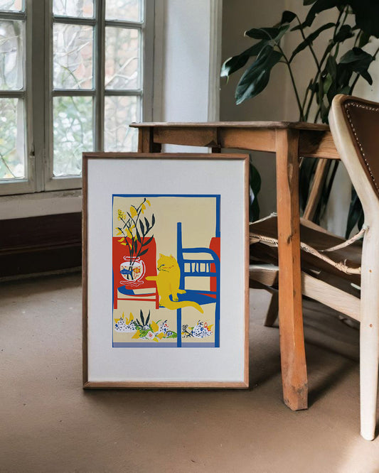 【ポスターのみ】Sunny Afternoon – Cozy Cat & Chair Posterアートポスター(A2,A3)