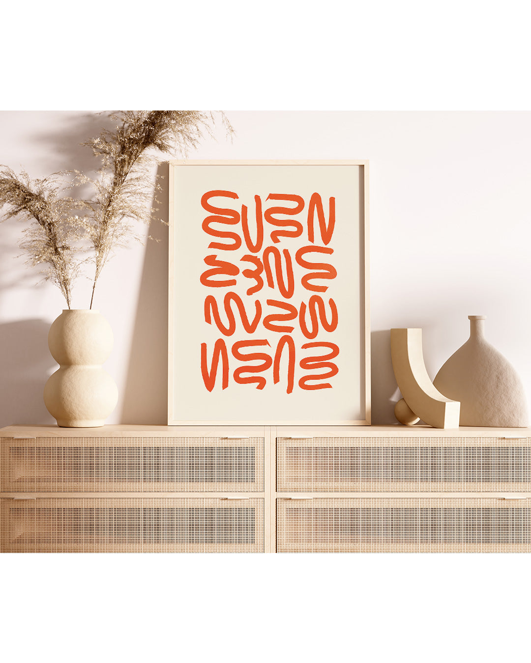 オレンジアブストラクトアートポスターは、鮮やかなオレンジ色のユニークなパターンが特徴の一枚です。
