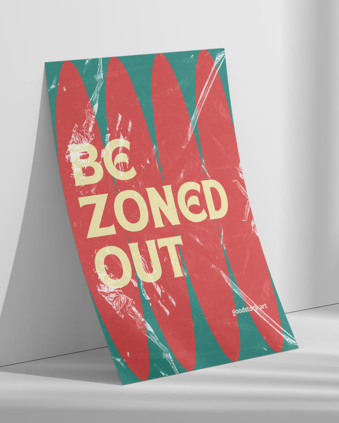 ポスター「Be Zoned Out」は、心を解放し、現実から少し離れる瞬間を楽しむことをテーマにしたデザインです。