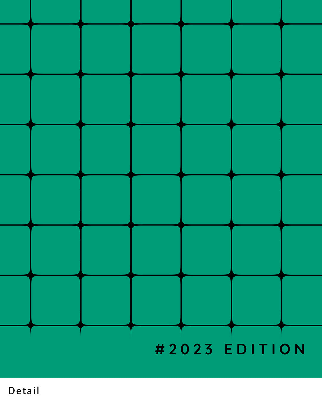 深みのあるグリーンの背景にシンプルなラインが整然と配置され、規則性の中に安定感と静寂を感じさせます。