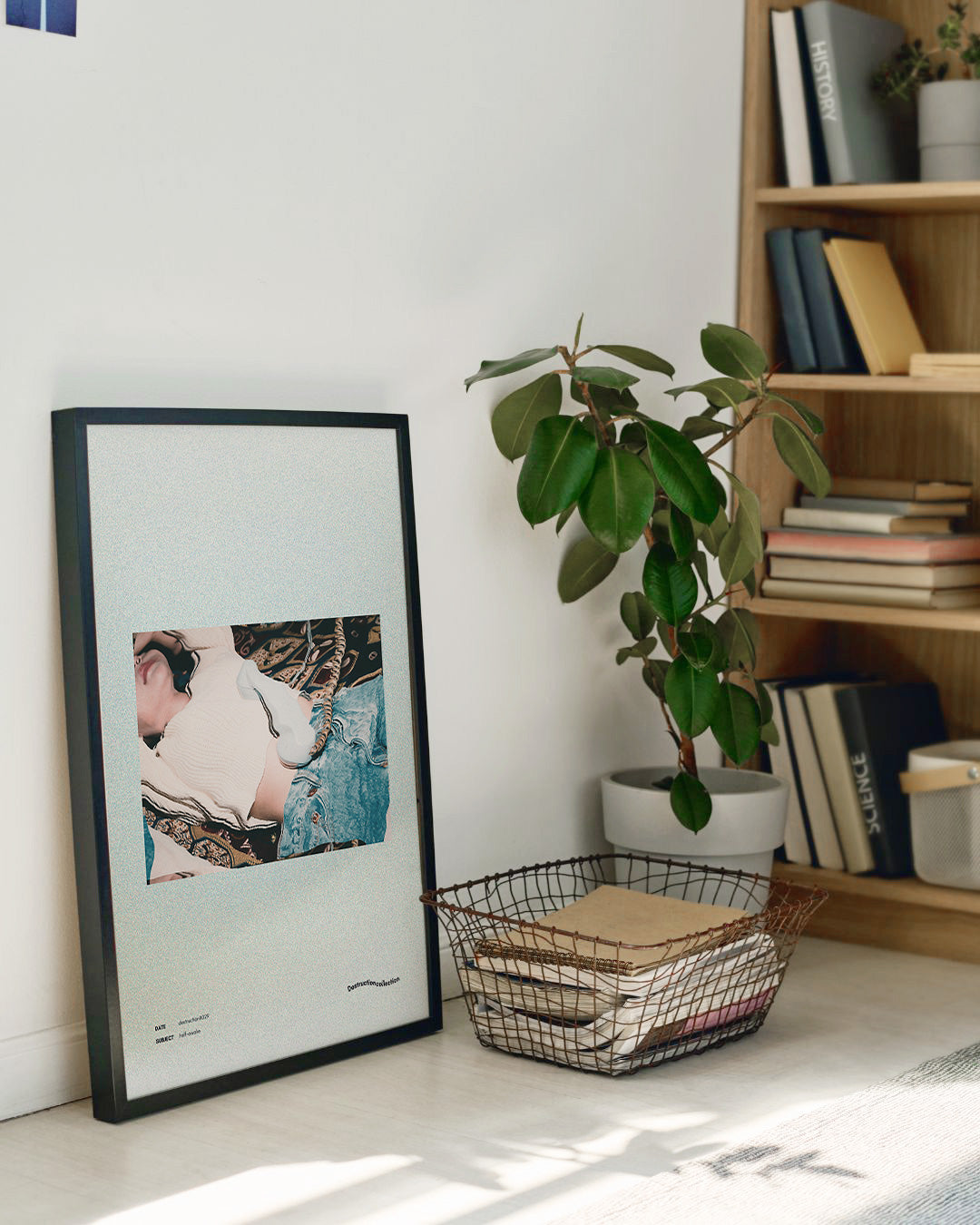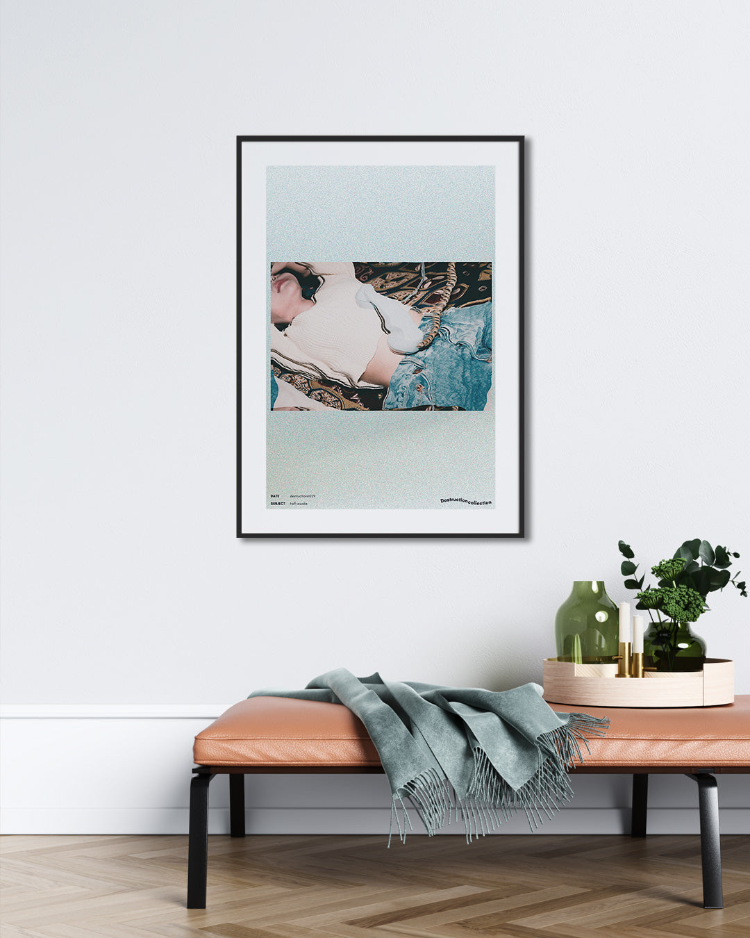 日常のワンシーンが、ゆっくりと溶けるように歪み、現実と非現実の境界を曖昧にするアートポスター。
