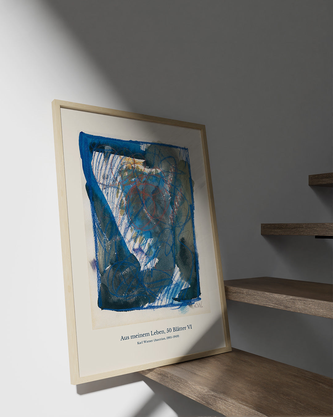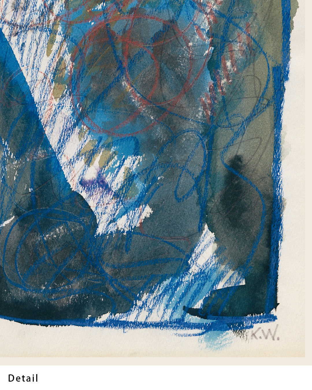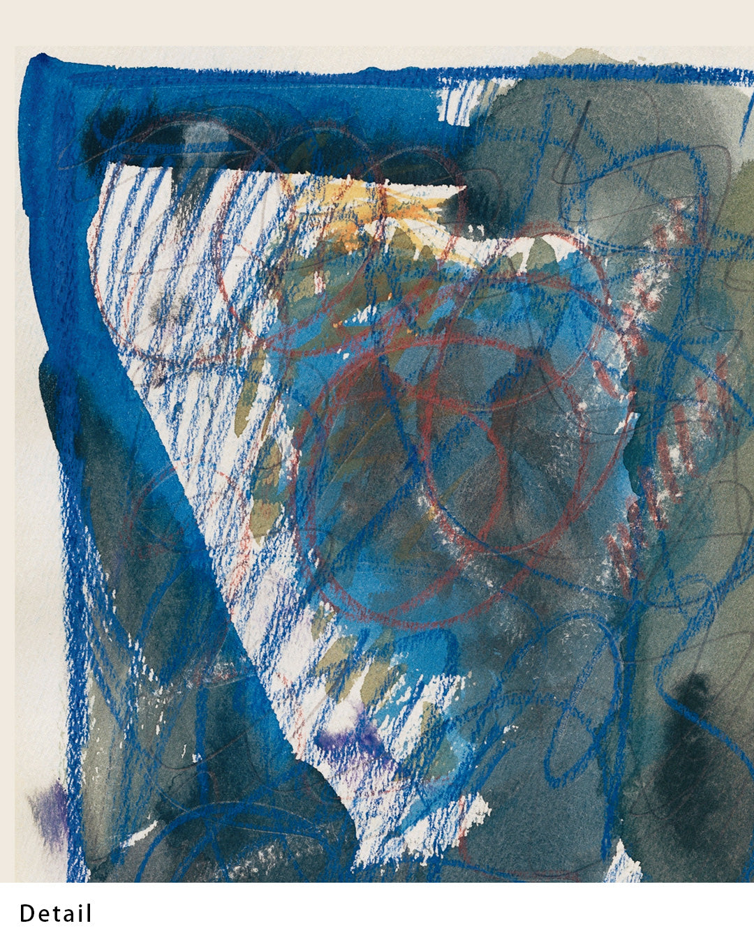 深みのあるブルーと力強い線が交錯し、まるで記憶の断片が浮かび上がるかのような作品です。