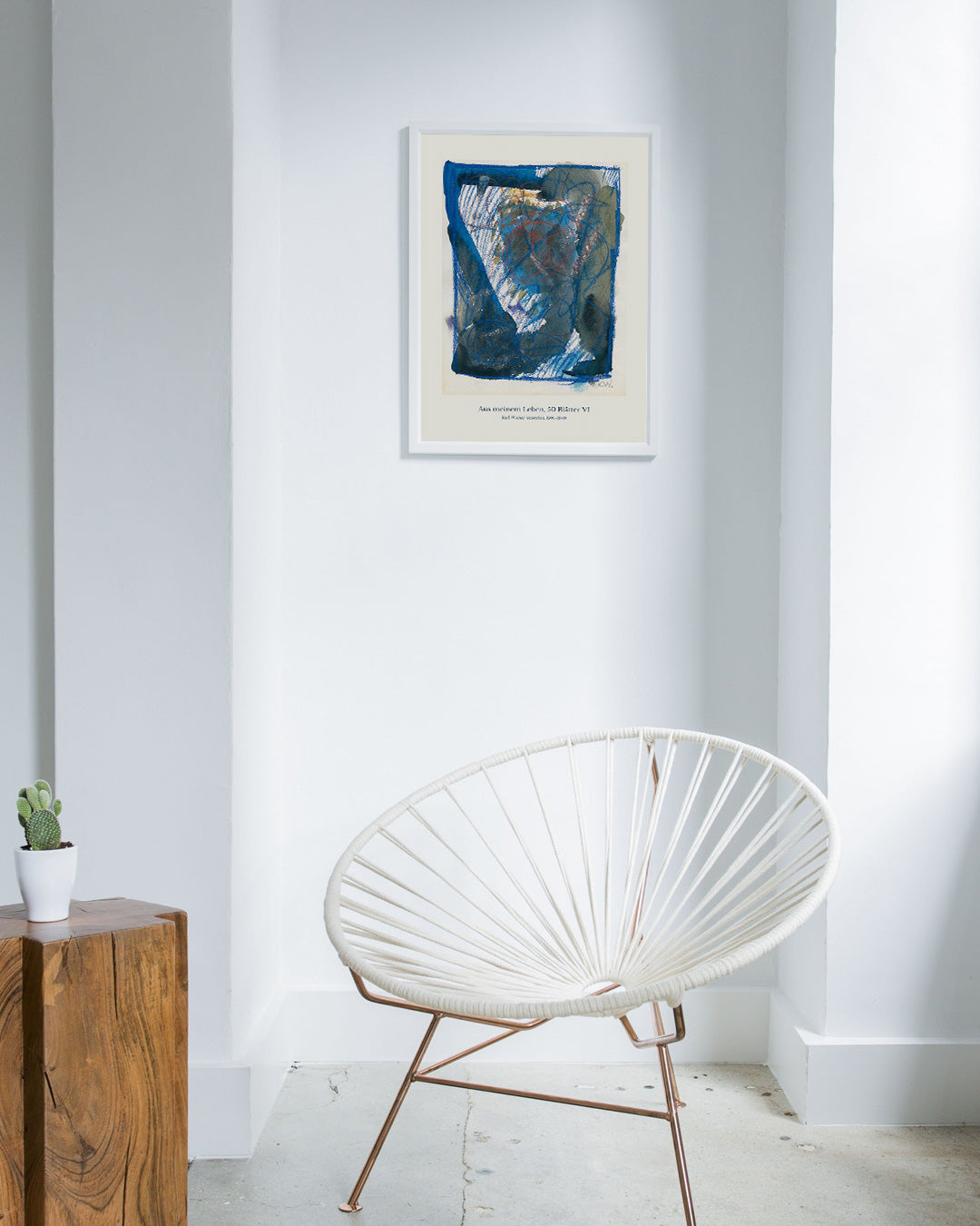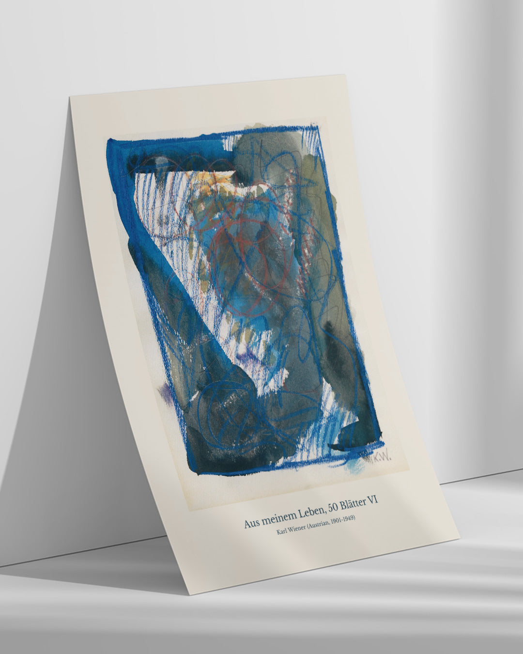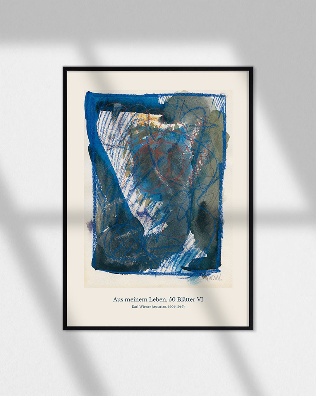 深みのあるブルーと力強い線が交錯し、まるで記憶の断片が浮かび上がるかのような作品です。