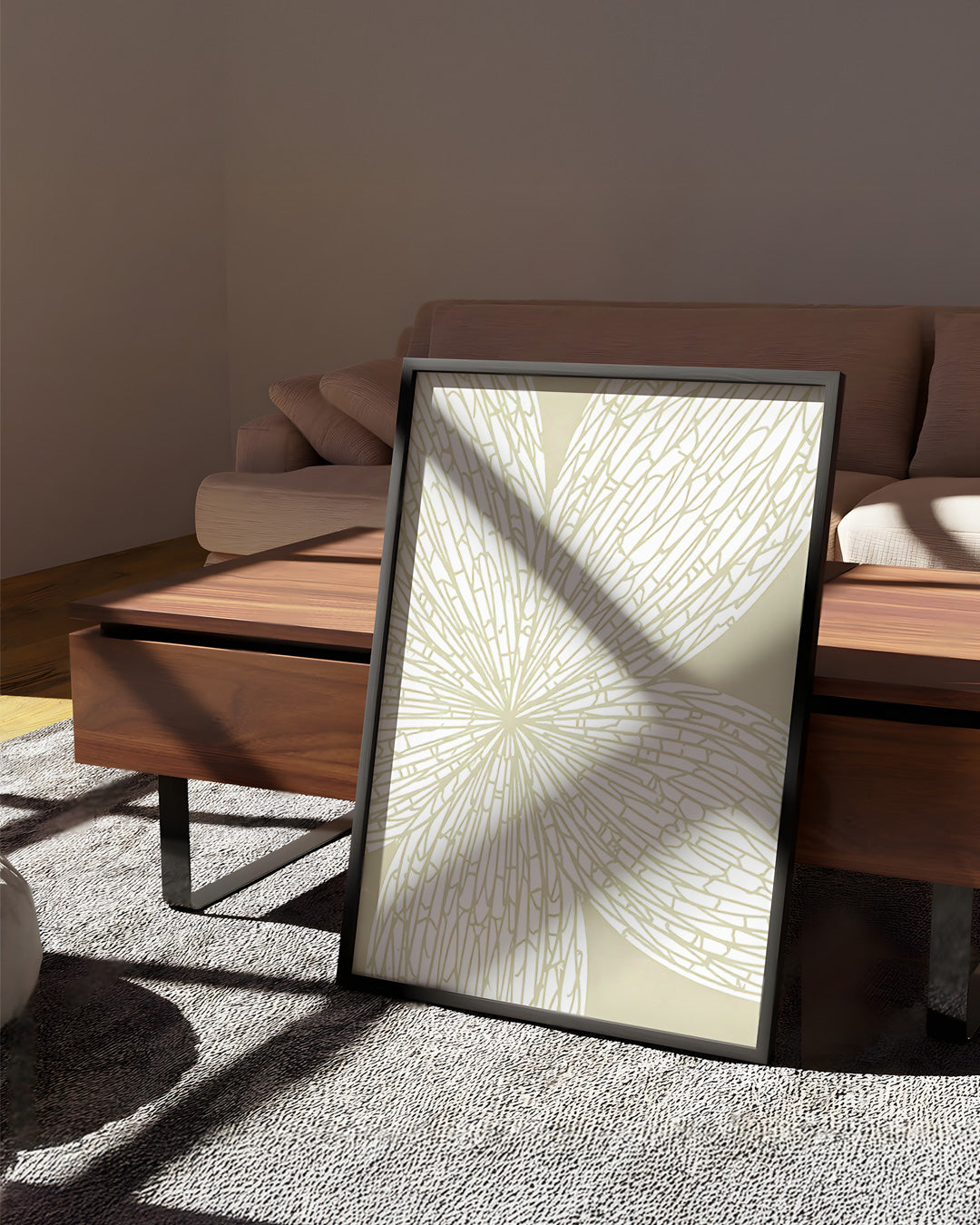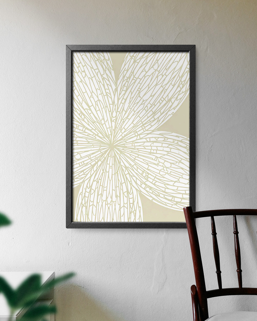 花びらのように広がる繊細な線が、静かなリズムを奏でるアートポスター。