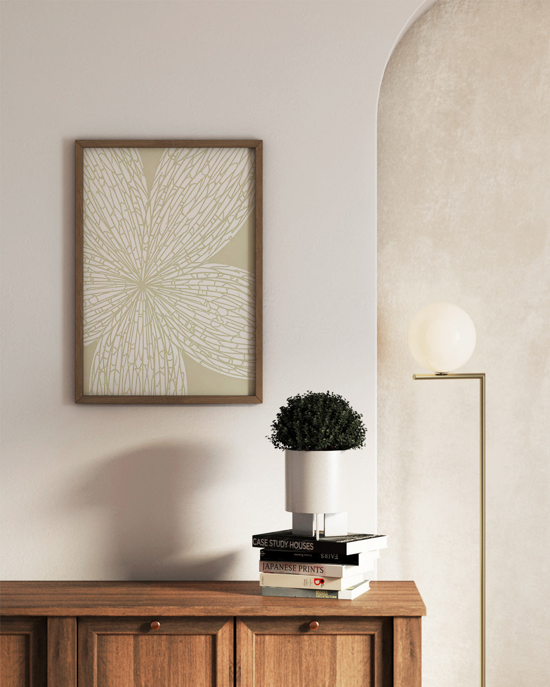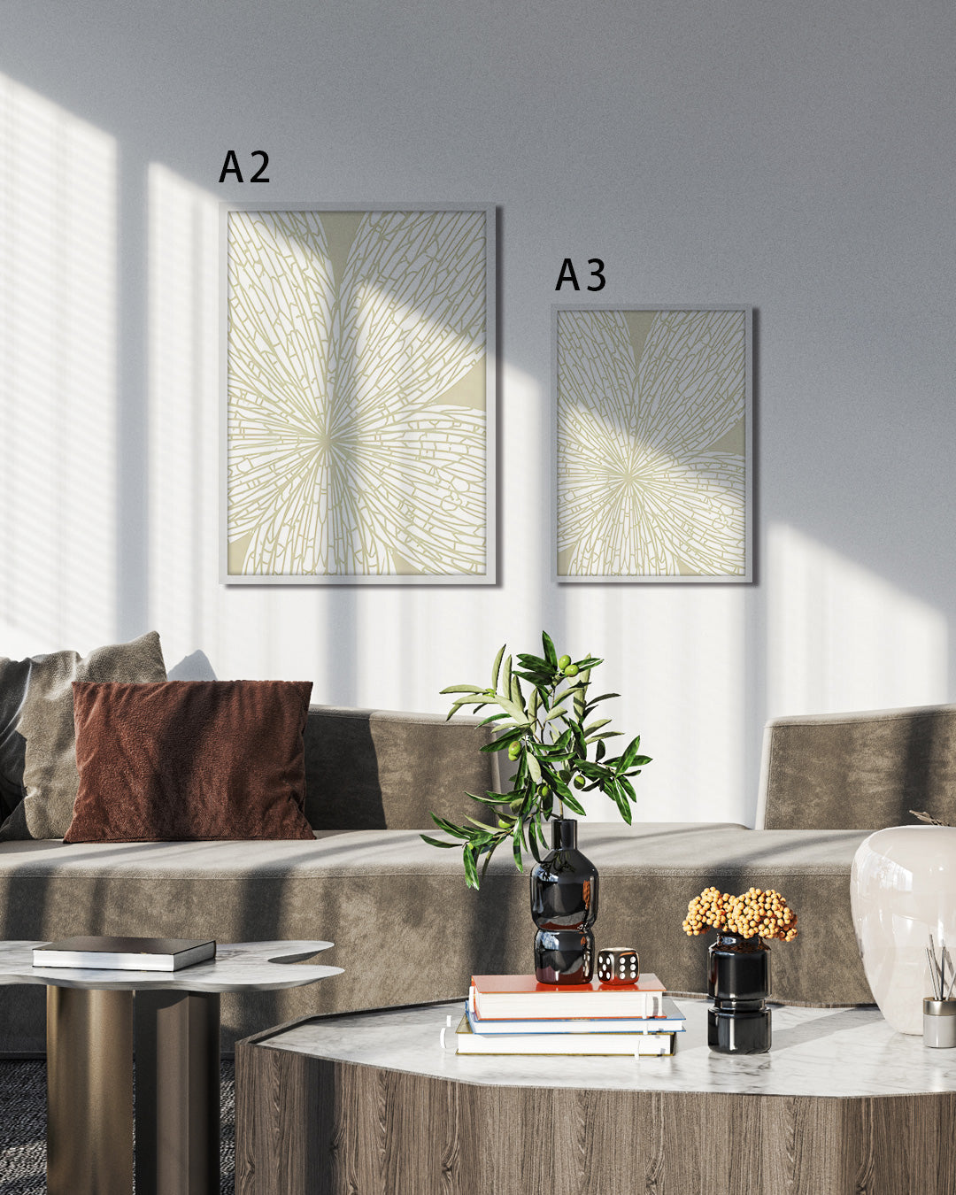 自然の造形美とミニマルな構成が融合し、モダンインテリアにもぴったりの一枚です。