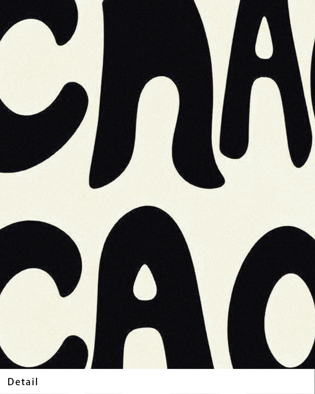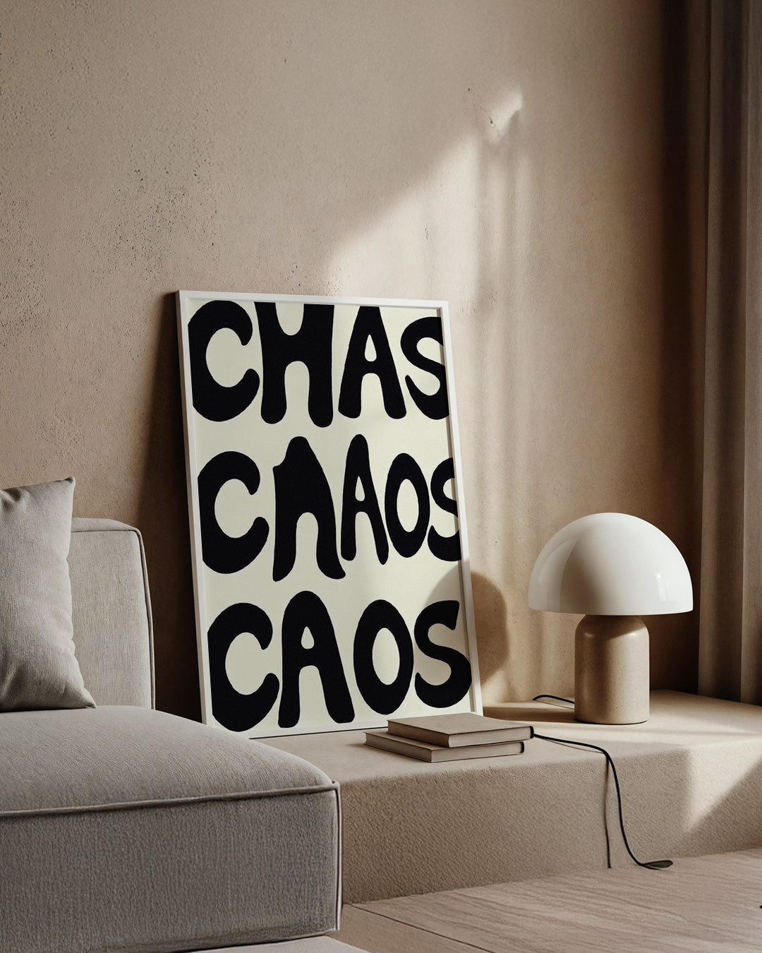 大胆なタイポグラフィで「CHAOS(カオス)」の文字が繰り返されるこのアートポスターは、グラフィックデザインのエネルギーと遊び心をそのまま壁に表現した一枚です。