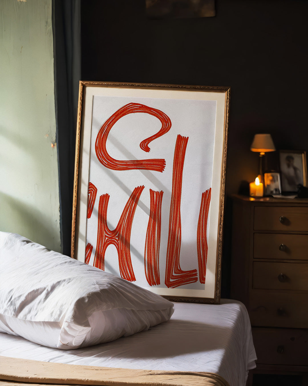 力強く描かれた「CHILL」のレタリングが印象的な、タイポグラフィアートポスター。