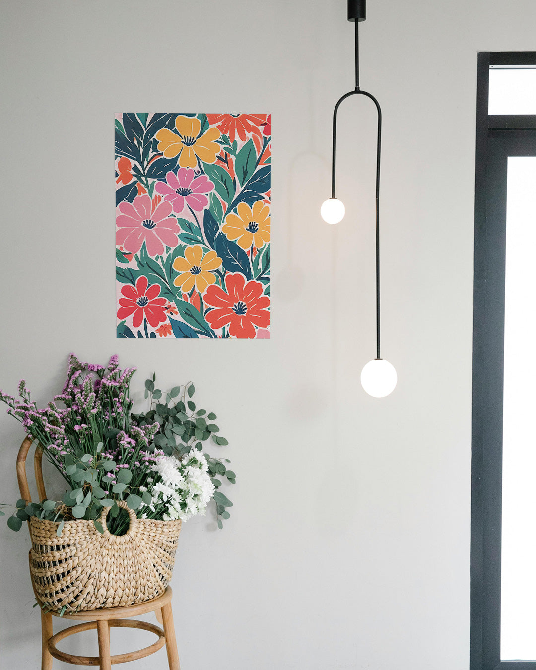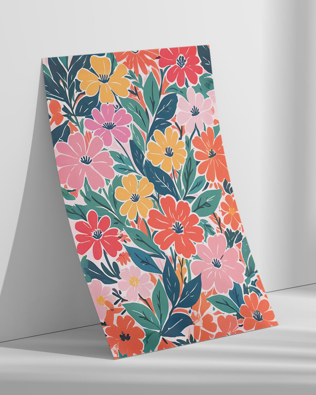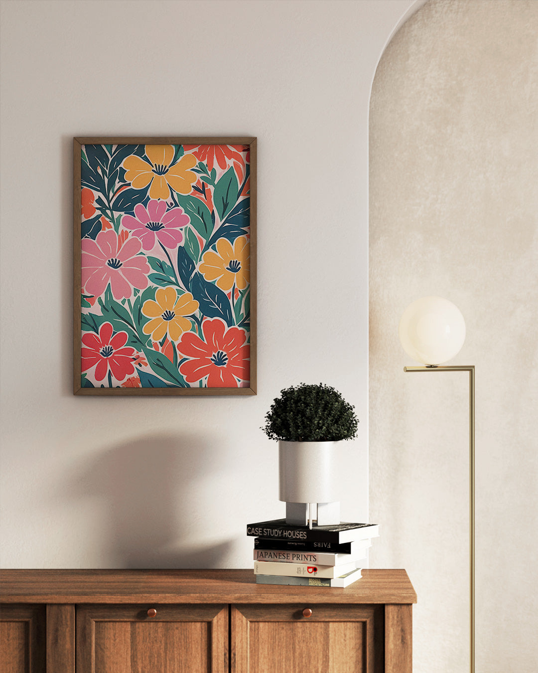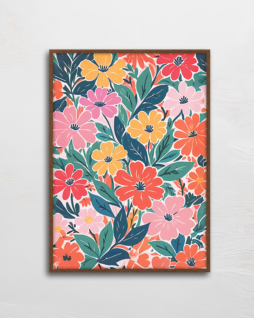 色とりどりの花々が咲き誇るフラワーモチーフのアートポスター。