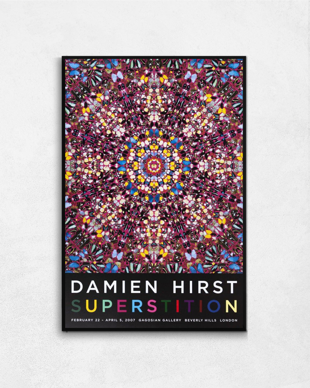 このポスターをお部屋に飾ることで、デミアン・ハーストの独自の芸術世界と「Superstition」展の魅力的なビジュアルを楽しむことができます。