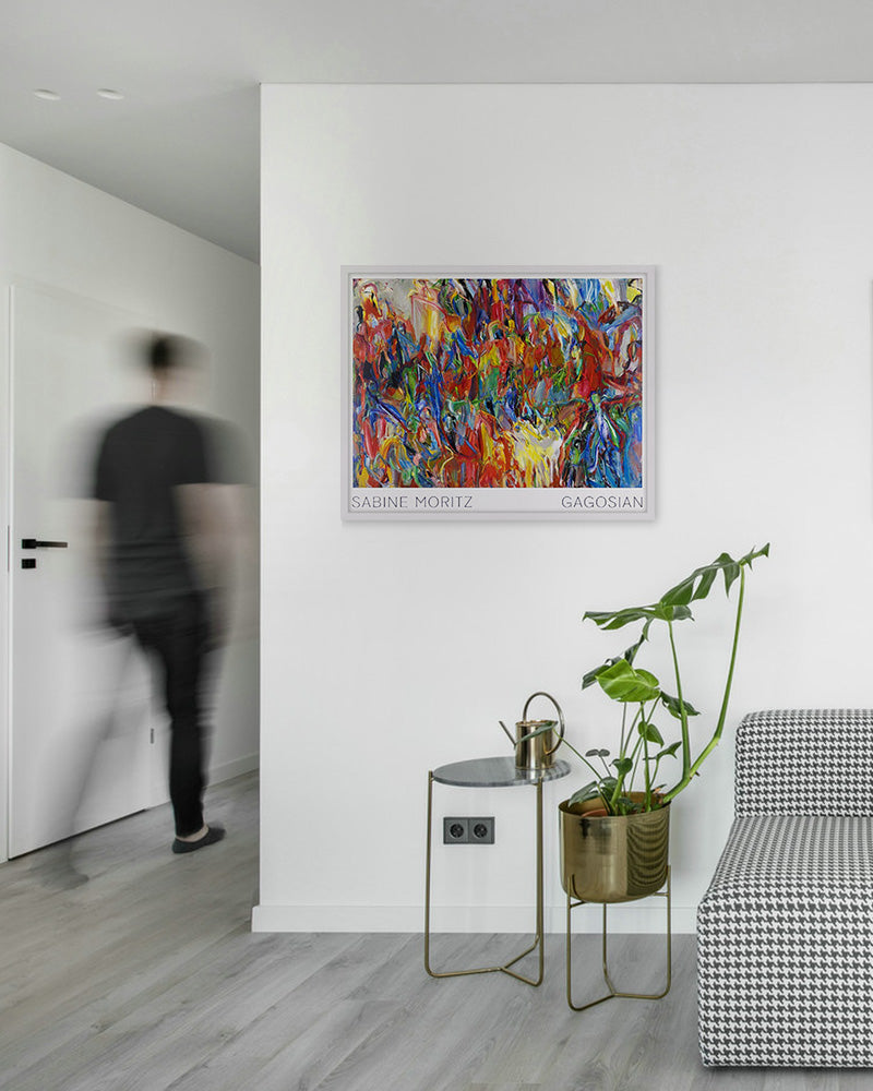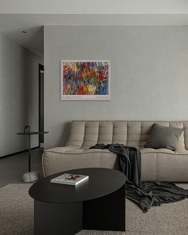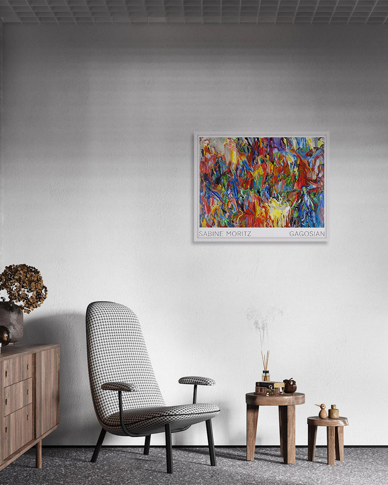 即興的な筆致によって生まれる複層的な色彩とダイナミックなテクスチャは、記憶・歴史・時間の流動性をテーマにしたモリッツの世界観を見事に視覚化。モダンアートや抽象画を取り入れたいインテリアにも映える、存在感あるアートポスターです。