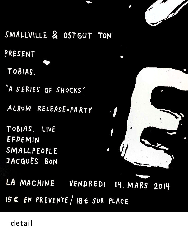 ドイツのエレクトロニックミュージシャン、トビアス・フロイント(Tobias Freund)の代表作であり、2014年にリリースされた2作目となるアルバム「A SERIES OF SHOCKS」のリリースパーティーポスターです。