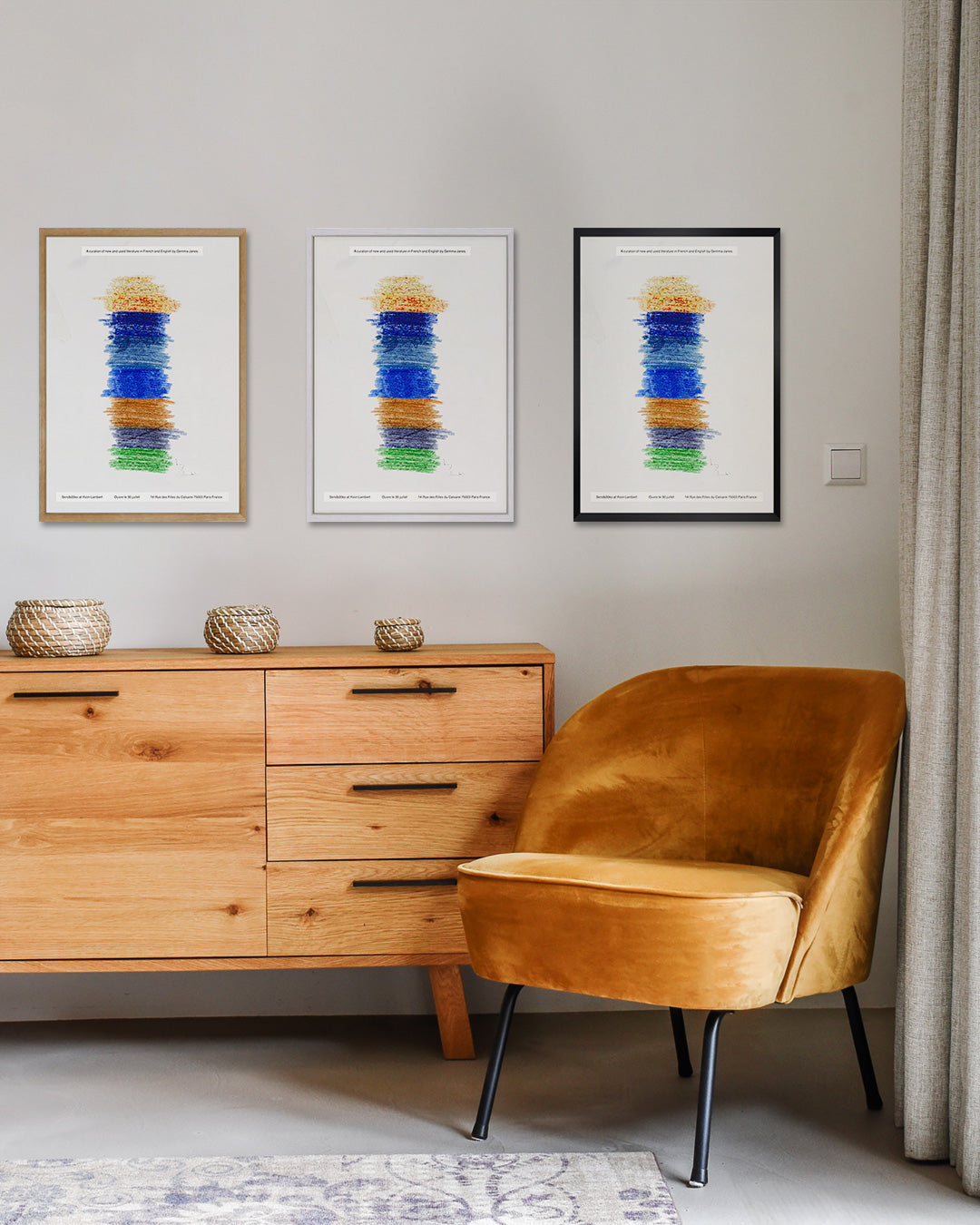 色鉛筆で描かれたような抽象的な縦のグラデーションが印象的なアートポスター「Sendb00ks – A Shelf at Yvon Lambert」。