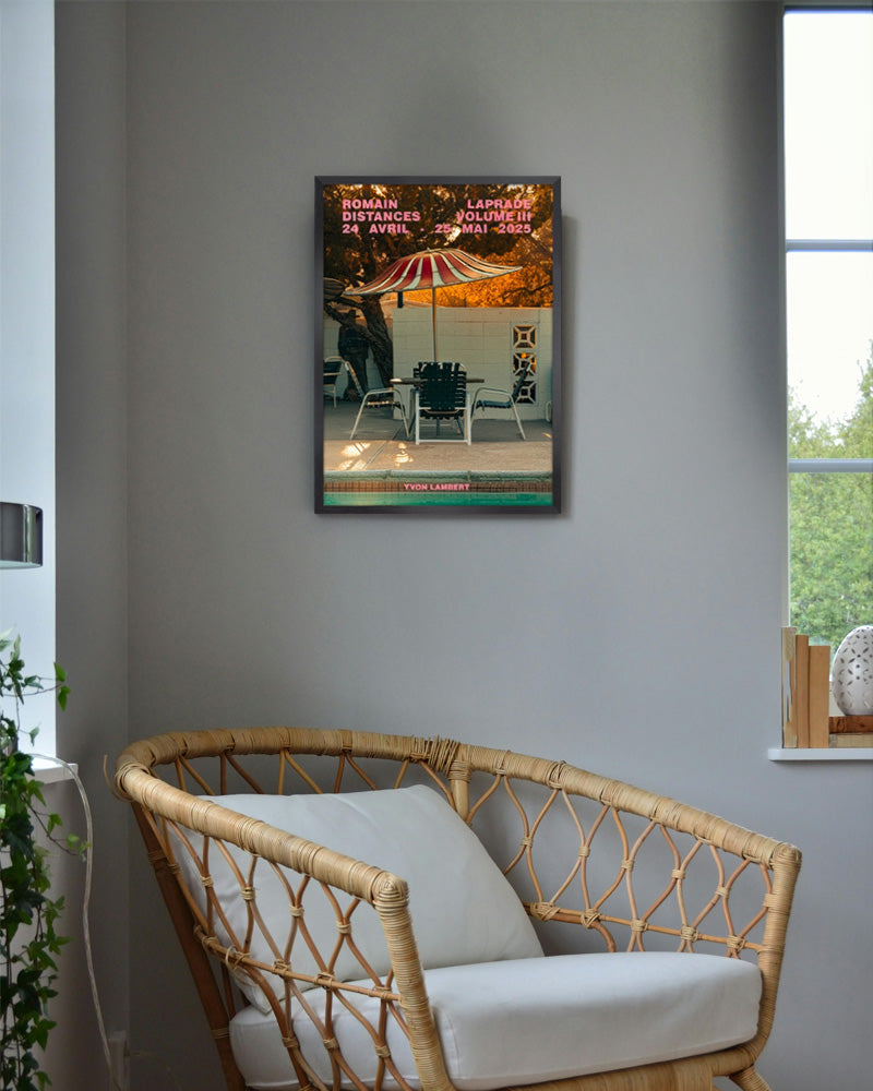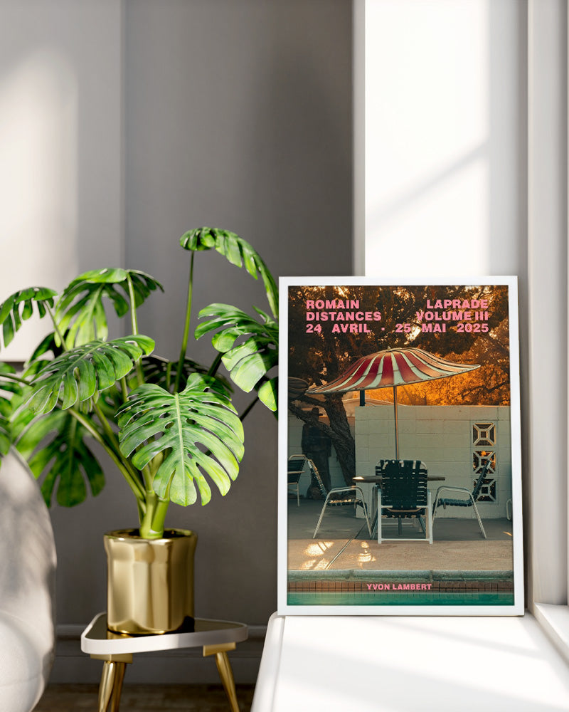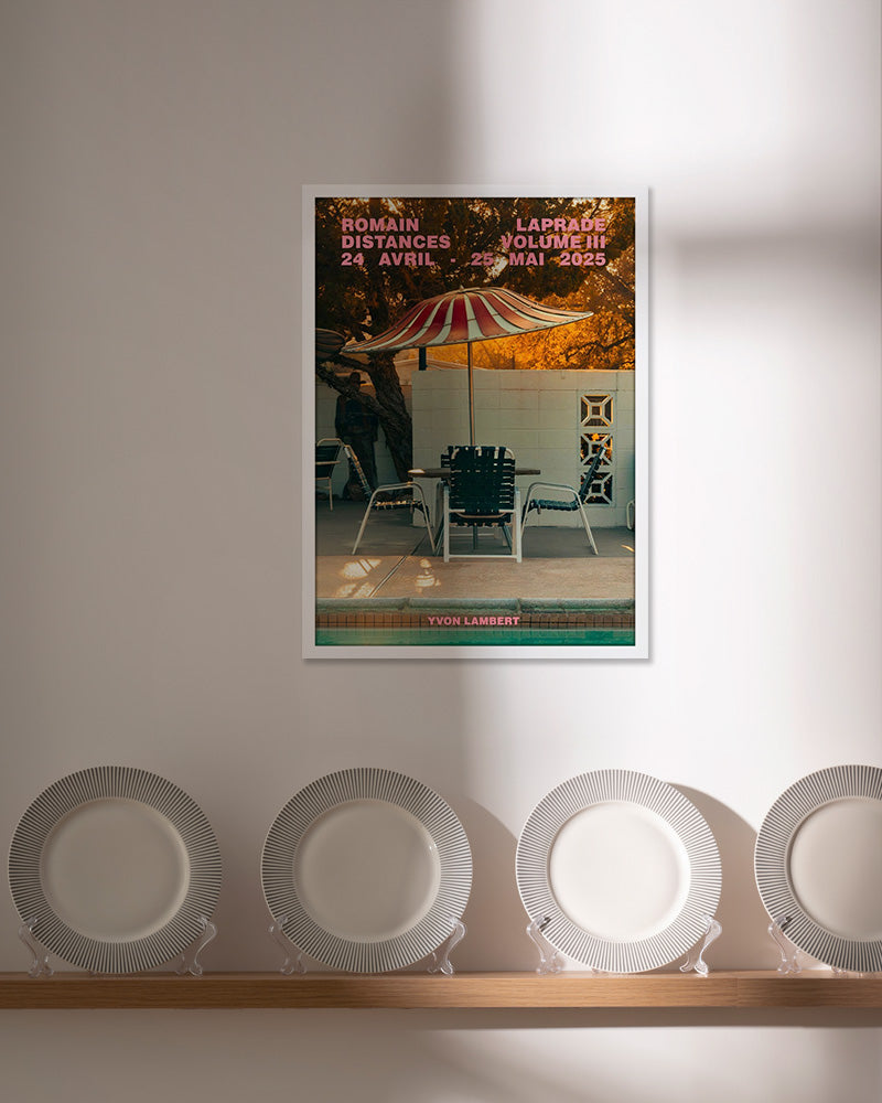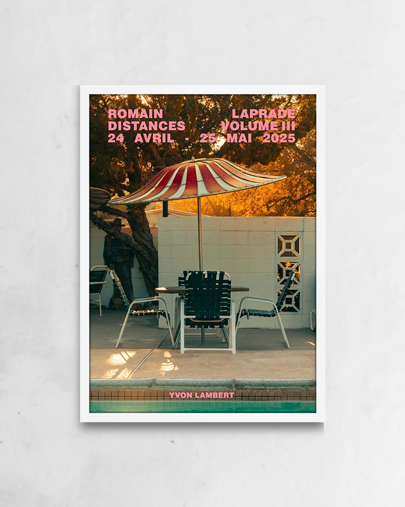 写真家 Romain Laprade(ロマン・ラプラード)の2025年にフランスのギャラリーで開催された展覧会「Distances」のために制作されたオリジナルポスター。