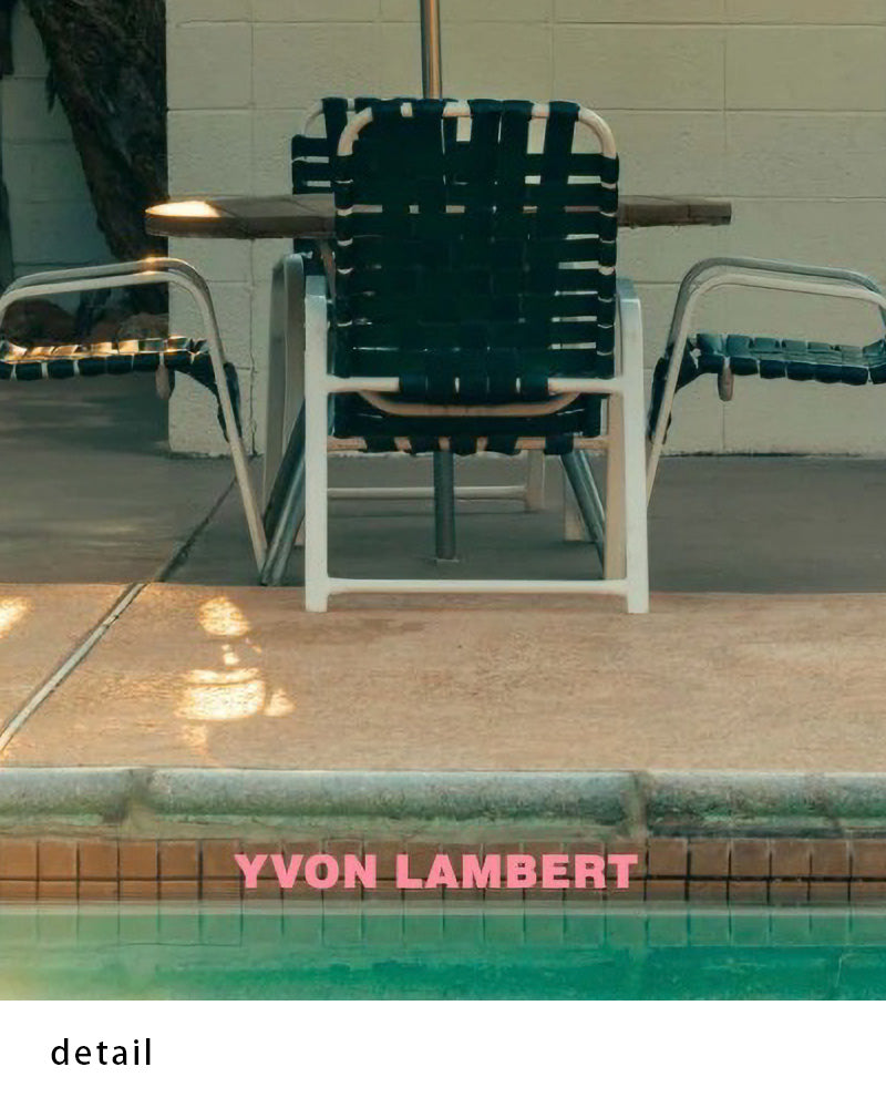 柔らかな夕陽に照らされたプールサイドの風景が切り取られ、何気ない瞬間が映画のワンシーンのように感じられる作品です。