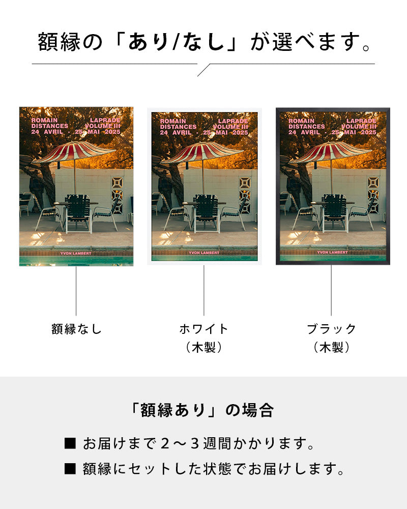 フレームはインテリアコーディネーターがポスターに合うフレームをセレクトしています。