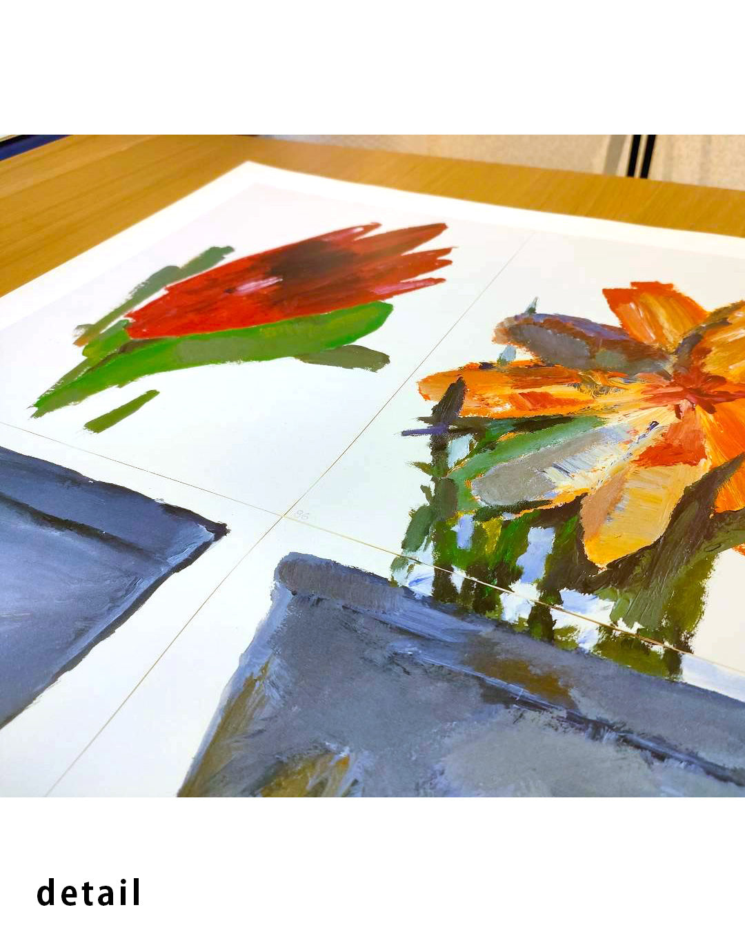 鮮やかな色彩とラフなタッチの対比は、空間に温度感とリズムを生み、モダンアートやコンテンポラリーアートを取り入れたいインテリアに最適です。