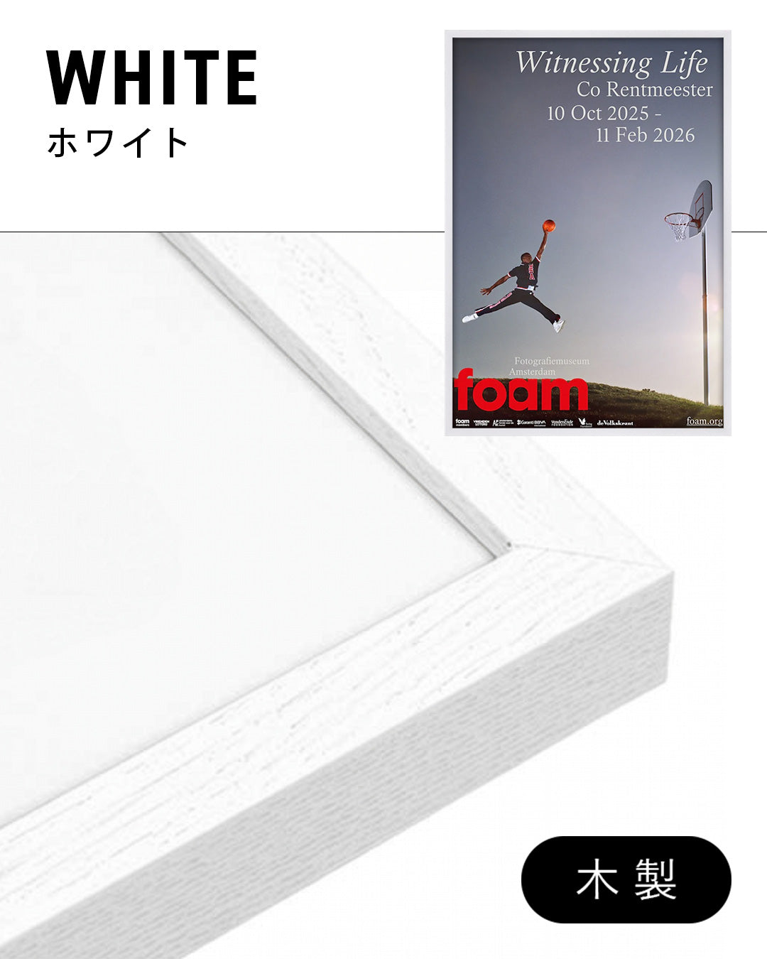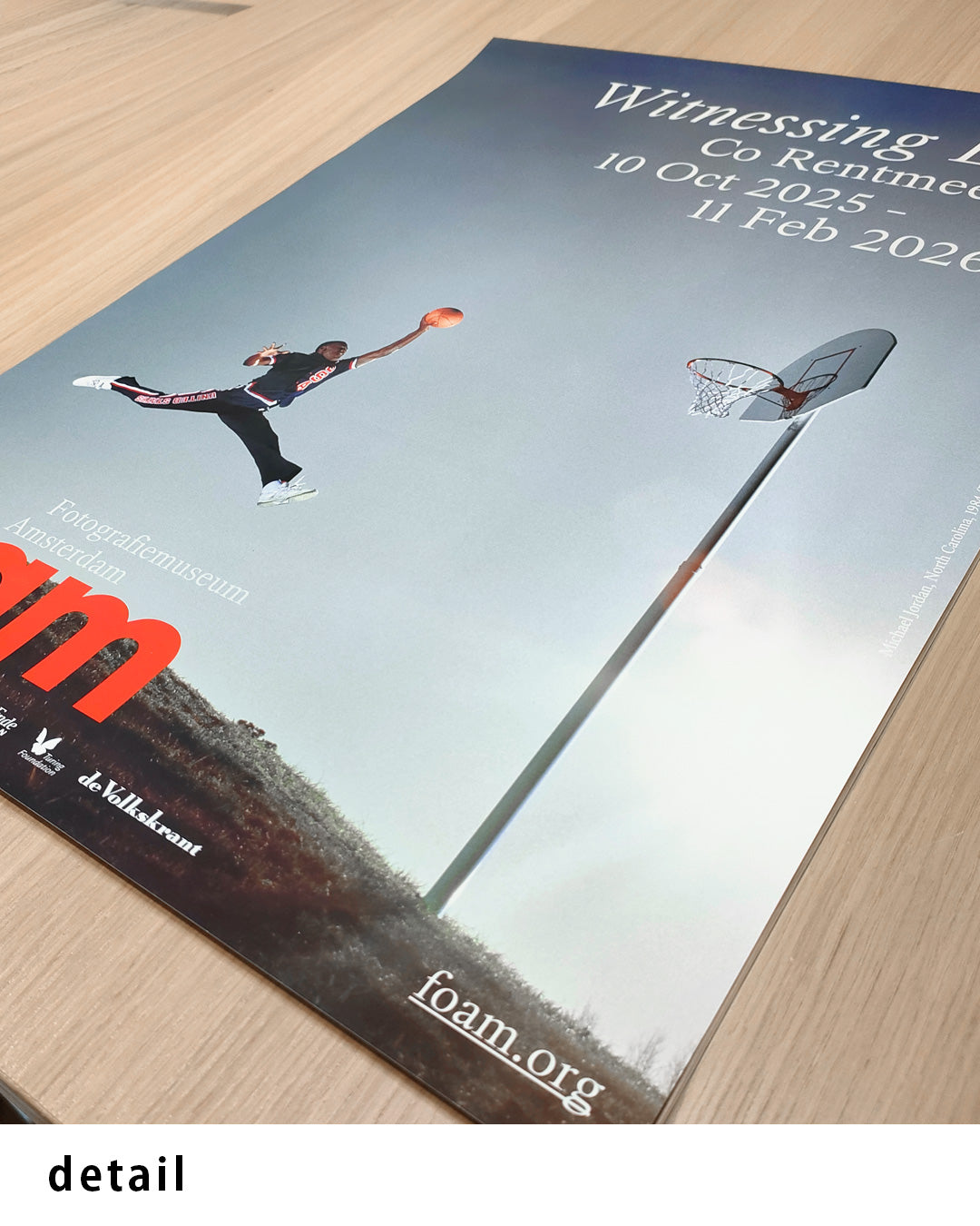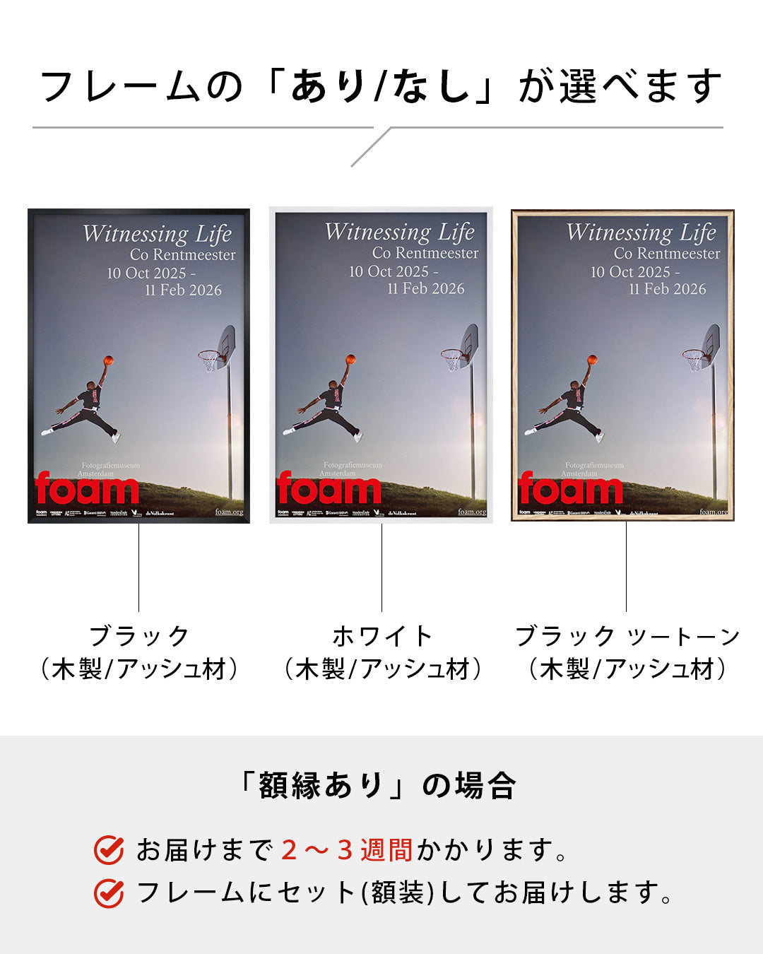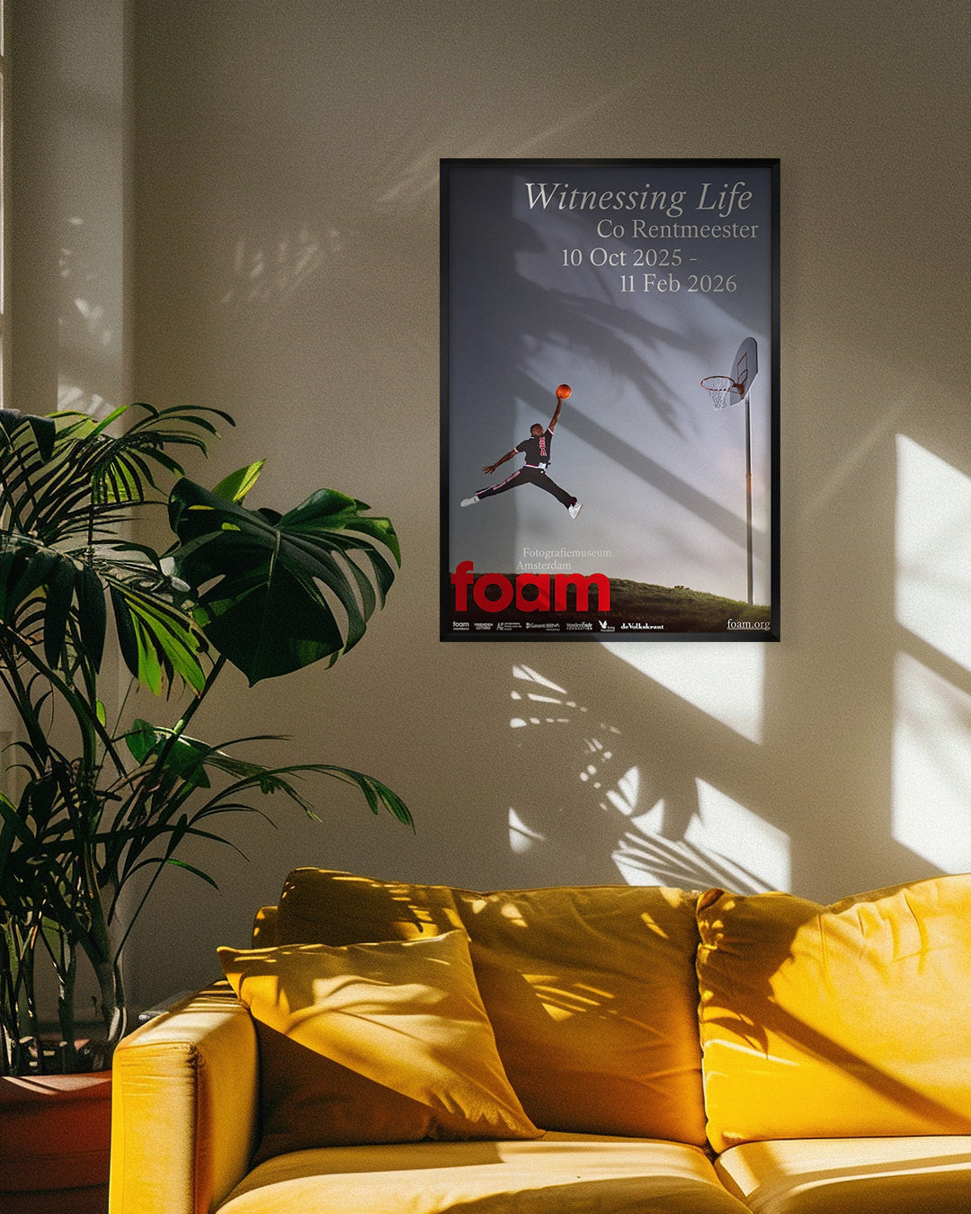 本作は、2025年にオランダ・アムステルダムの写真美術館Foam(Fotografiemuseum Amsterdam)で開催された展覧会「Witnessing Life」の公式エキシビションポスター(A2サイズ)です。